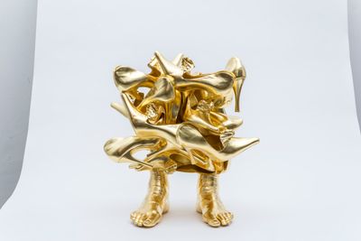 Haar Shoe Sculptures zijn niet slechts accessoires, maar sculpturen die de rol van de schoen in de geschiedenis en hedendaagse cultuur opnieuw definiëren